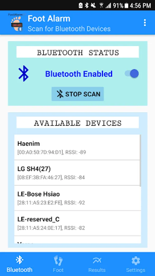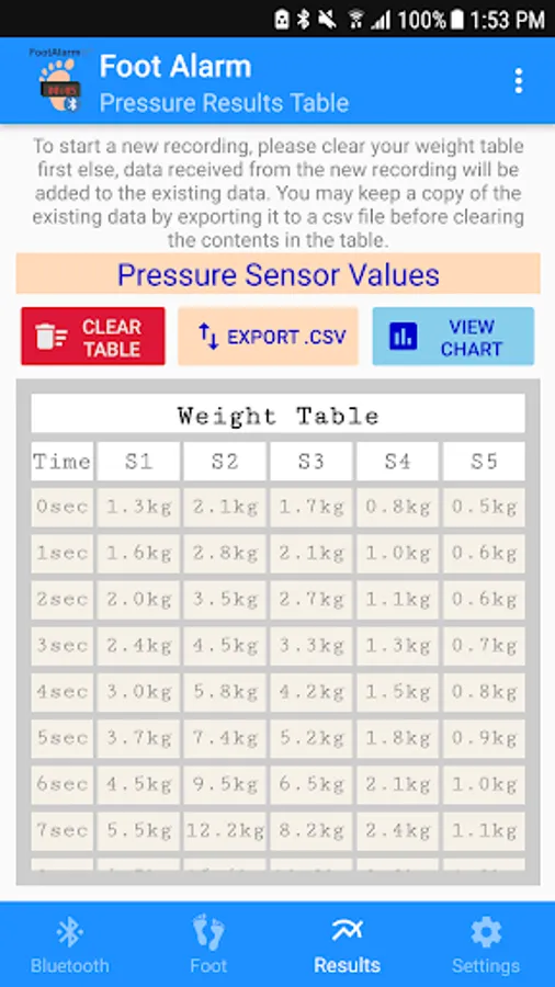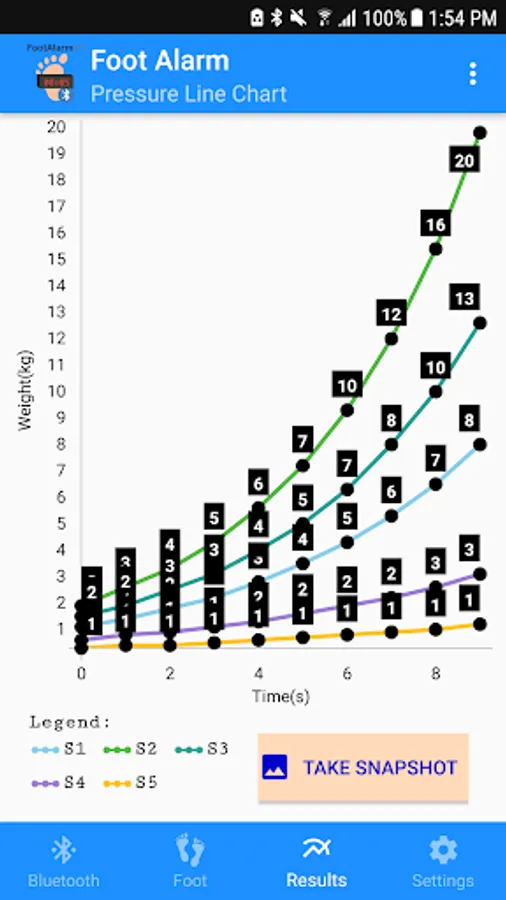 - Graphical plot of real time data from Foot Alarm Bluetooth