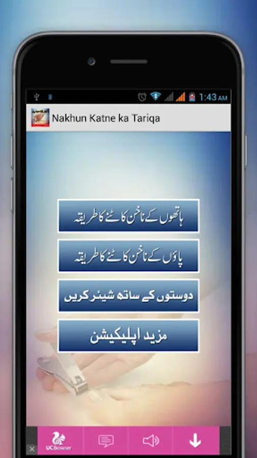 Is Appication mian app jan sakte hia Nakhun katne ka Sunnat (Islami) Tariqa. Hum sub wese to nakhun katay hai agar hum ya jan le or yaad kar le k islamic tariqa kia hai or as par amal kare to humara ya nakhun katna b sawab ban jaay bas zara se tawaja ki zarorat hai.