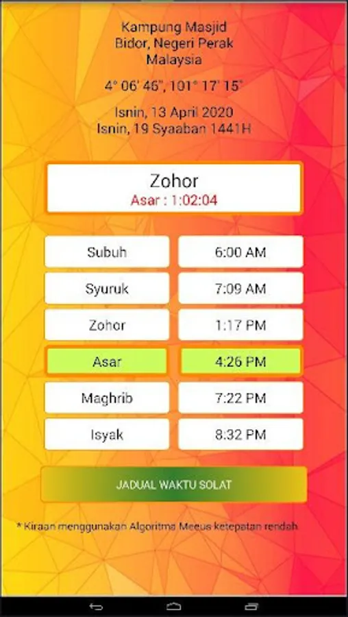 1. Zon waktu untuk Waktu Solat dari widget telah dibetulkan.