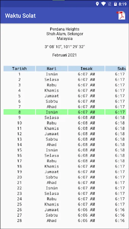 1. Export jadual waktu solat ke format pdf telah ditambah.
