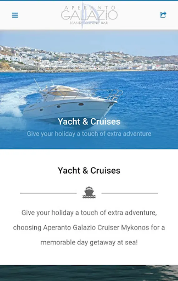 Aperanto Galazio offers you the opportunity of a daily escape, as we own a Cruiser with 2 cabins and a capacity of 6-8 persons with a Skipper.