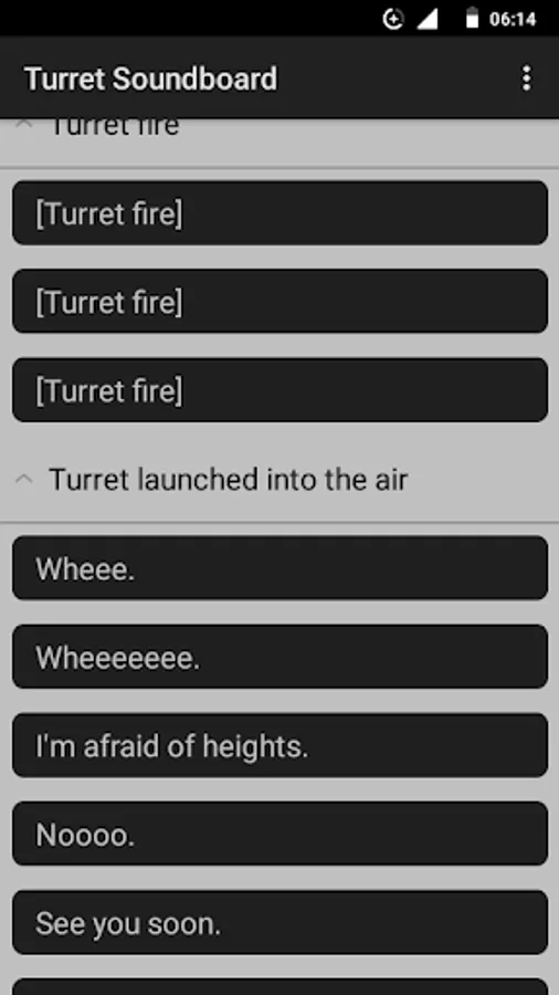 Turret Soundboard allows you to listen to the voice lines of turrets from the game Portal 2.