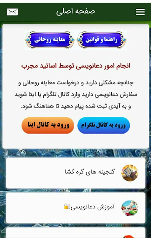 🔰 Prayers and experienced versions with different topics (narrative need, fortune-telling, sustenance, attracting love, healing and treatment, pregnancy, job opening, tongue binding, amulet of imams, invalidation of magic and sore eyes, and all miscellaneous prayers...)