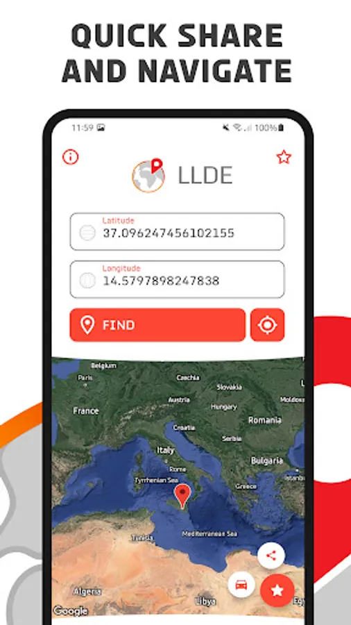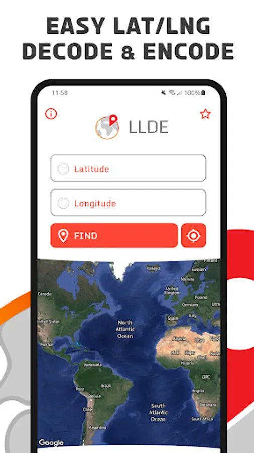Decode or Encode Lat & Long of any location quick & easy. Get it's location on map and Save it.