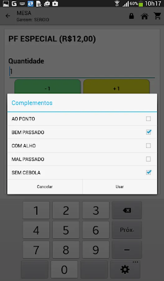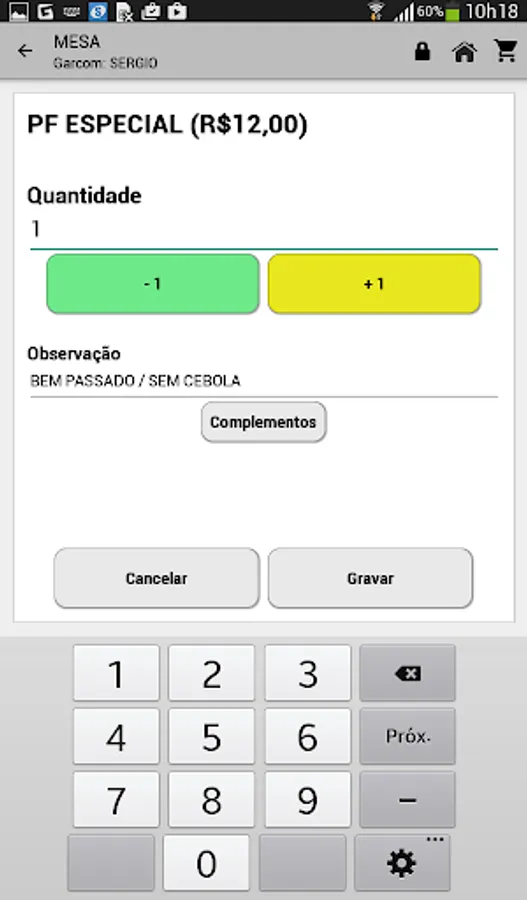 predefined -Complementos (with ice, no onions, bacon + + sauce, etc.)