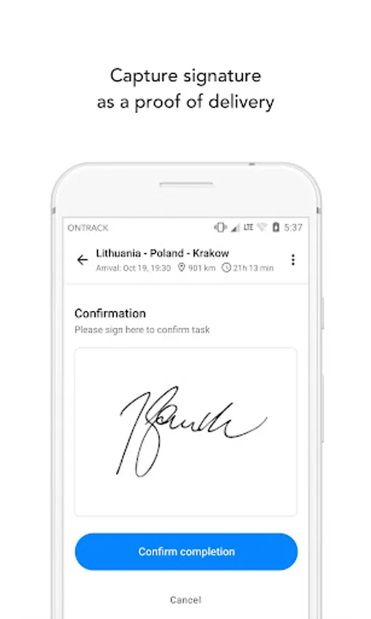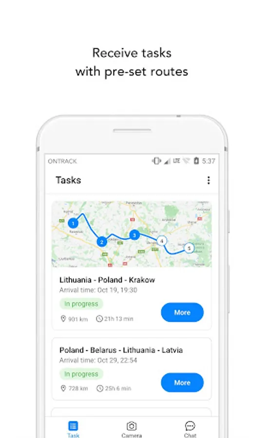 OnTrack Go mobile application ensures smooth interaction between drivers and dispatchers – improved communication and task management are now easily controlled with just a few clicks.