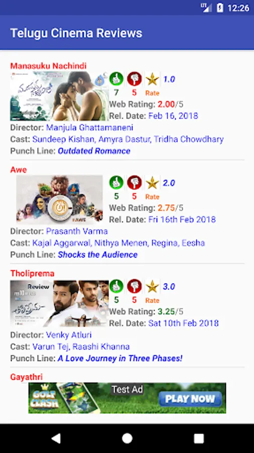 Telugu Cinema/Movie Reviews and Ratings
