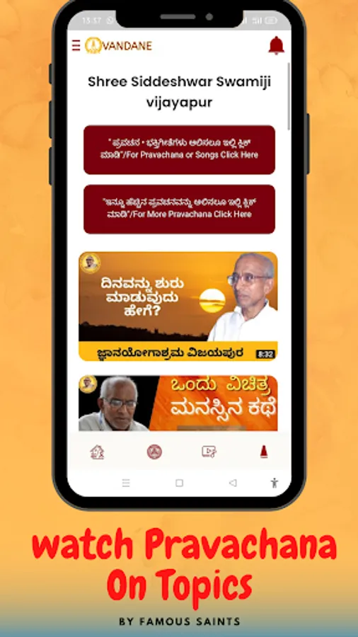 Vandane Pravachana Kannada, Pravachana app, Darshana app, Devotional Songs, Kannada devotional app, spiritual discourses, temple visits, live darshan, famous Indian temples, Gurujis, Sri Gavisiddeshwar Swamiji Koppal, Sri Siddeshwar Swamiji Vijayapur, Sri Shivakumar Swamiji Bidar, Sadguru Bhageshwar Dham Sarkar, Nijagunanand Swamiji, Hanuman Chalisa, Ram Katha, Puranas, Sri Krishna Katha, bhajans, WhatsApp videos, devotional content.