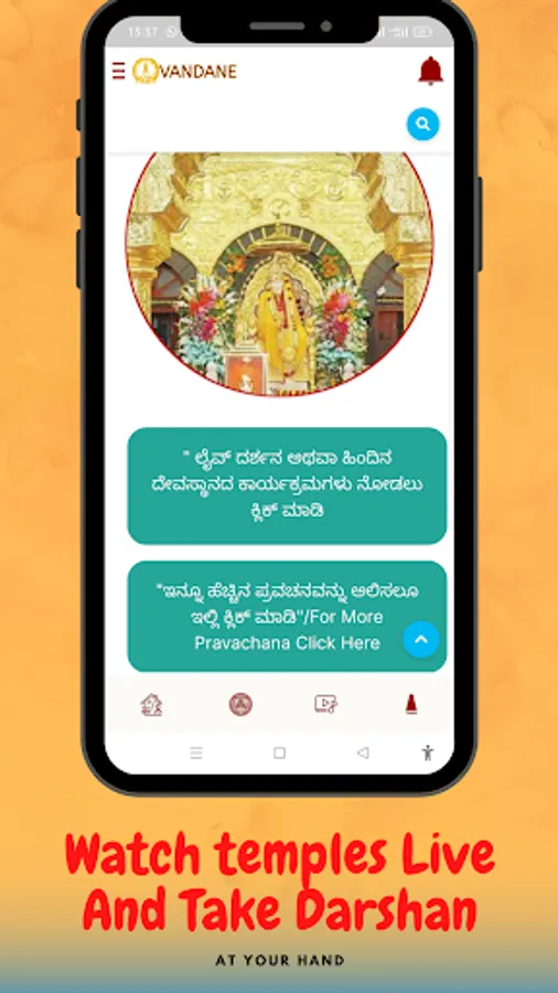 In addition to Pravachana, Vandane brings you the divine experience of Darshana, allowing you to witness the live darshan of several famous Indian temples. From the sacred abodes of deities to the holy sites of pilgrimage, you can virtually visit these revered temples, connecting with the divine energy wherever you are.
