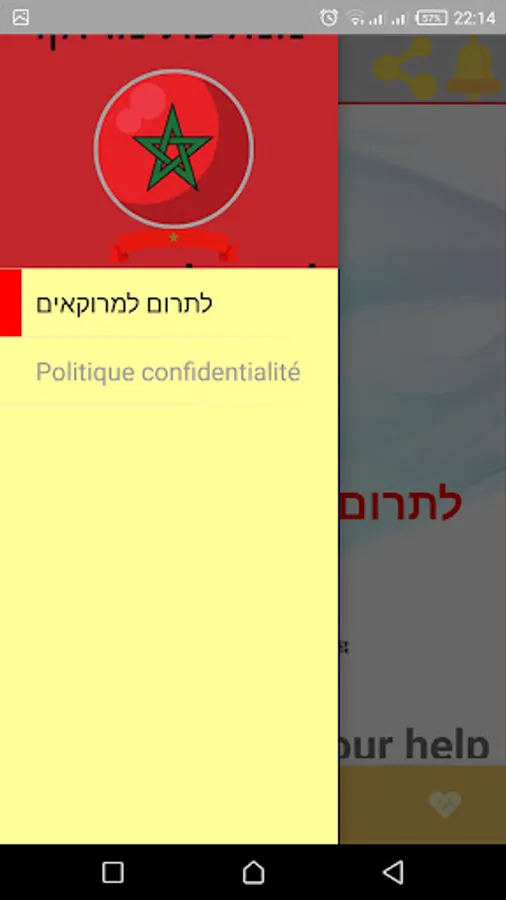 אפליקציה זו היא בקשת צדקה המופנית לעם הישראלי, בה אנו מזמינים אותו לתרום, באמצעות אפליקציה זו אנו רוצים להפיץ את אהבתם של הישראלים למרוקו והסולידריות שלהם עם המרוקאים, על ידי פרסום תרומותיהם ונדיבותם. דרך עמוד הפייסבוק שלנו, ובמקביל לאתגר את המפקפקים בנדיבות עם ישראל אנו מודים לכל אלו שתורמים תרומה זו תוקדש לצדקה