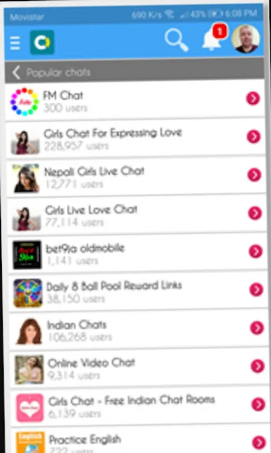 دردش وكون صداقات جديدة عبر غرف الدردشة في تطبيقنا واتس الملكي الأصفر دون متطلبات التسجيل فقط اكتب اسم مستعار حيث يمكن لمستخدمي الإنترنت من جميع أنحاء العالم الإنضمام والمشاركة في محادثة مجانية عبر الانترنت مع أشخاص حقيقيين. وتوجد حرية مطلقة للدردشة من خلال الاقسام المختلفه الموجودة في التطبيق .