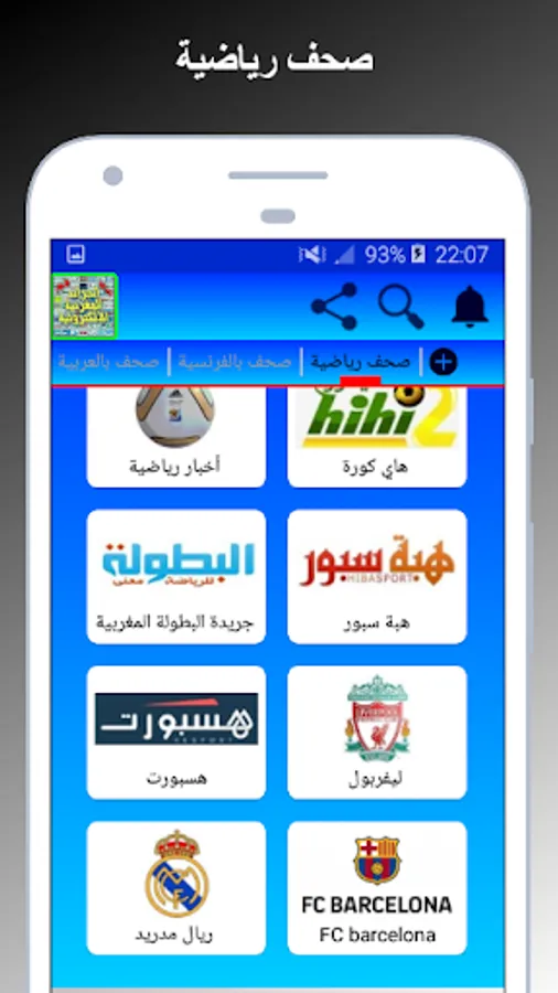 The application consists of newspapers in Arabic and French.