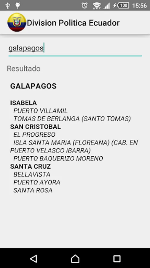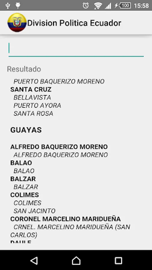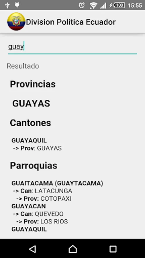 If the search matches a name of province just the same with its cantons and parishes will be shown.