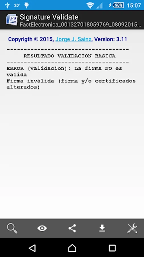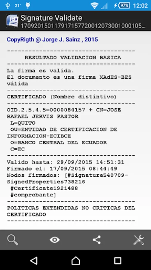 Only you need to save your XML documents in the Downloads folder of your internal storage and the application will look for them and inform them of the results of basic validation, and will also offer extended non-critical certificate policy with which it has signed .