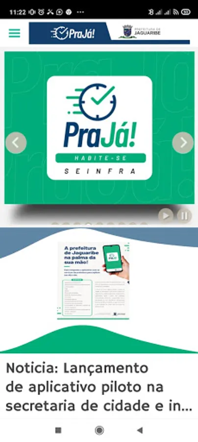 Main features: online service desk, where citizens can make requests with a private login and password and receive personalized service in this system, services refer to sewage services, public cleaning, pruning, weeding, road maintenance, repair of public pavements, lighting, issuance of occupancy permits, issuance of construction permit, issuance of transport permit, anonymous reporting of irregular land functionality, functionality of identified reporting of irregular land, notifications (push notifications) of important information for the citizen periodically making the application a bilateral information exchange system, that is, population in the sense of public administration and public administration in the sense of the population, direct chat features with the server for personalized online service, contact functionality with the SEINFRA secretariat, support functionality of the app itself featuring it as a self-instructional app, where any citizen even without knowledge of the app's usability can learn to use it by watching short support videos, but very rich in instruction about the app; photo functionality to publish the works of the public administration in a specific character of the Infrastructure and City of Jaguaribe Secretariat, generating administrative acts in accordance with the principle of publicity according to art.37, caput, of the Magna Carta; Functionality to consult public works carried out and in progress in the municipality.