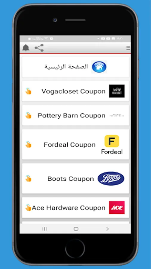 The application displays coupons from various Arab and international stores so that you can get an additional discount on your purchases from these sites. Coupons are updated continuously and coupons are added so that you can benefit from the application