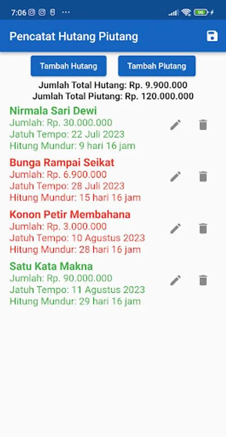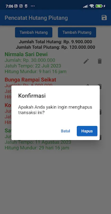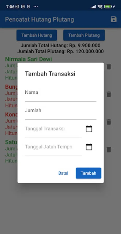 The most simple and easy-to-use Debt Receivable Recording Application, there is a backup feature to other media so that accounts payable records are not lost.