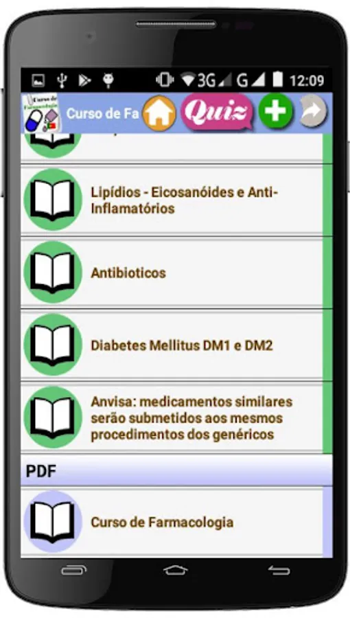 This free application is a dynamic library developed by the best specialized French educational websites Course in Pharmacology (Portuguese)