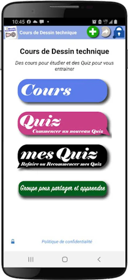 This free application is a dynamic library powered by the best French educational sites specializing in Technical Drawing Courses.