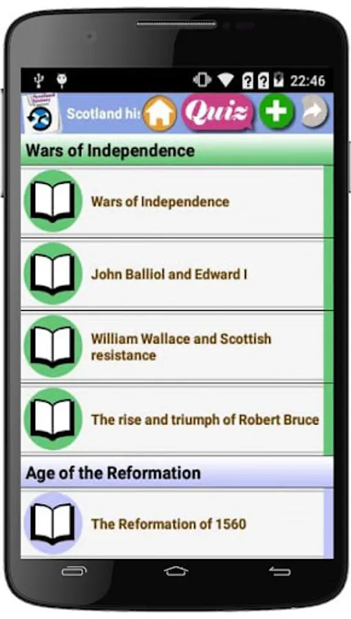 This free application is a dynamic library powered by the best English educational websites specialized in Scotland history course.