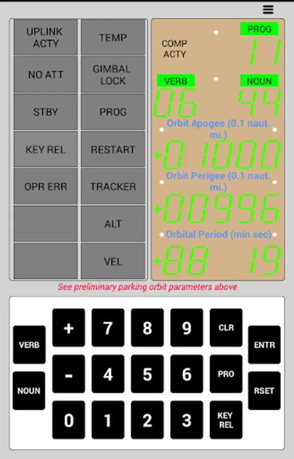 As a bonus, you will be able to type in a small subset of the actual commands that the astronauts entered into the AGC via the DSKY and see relevant results.