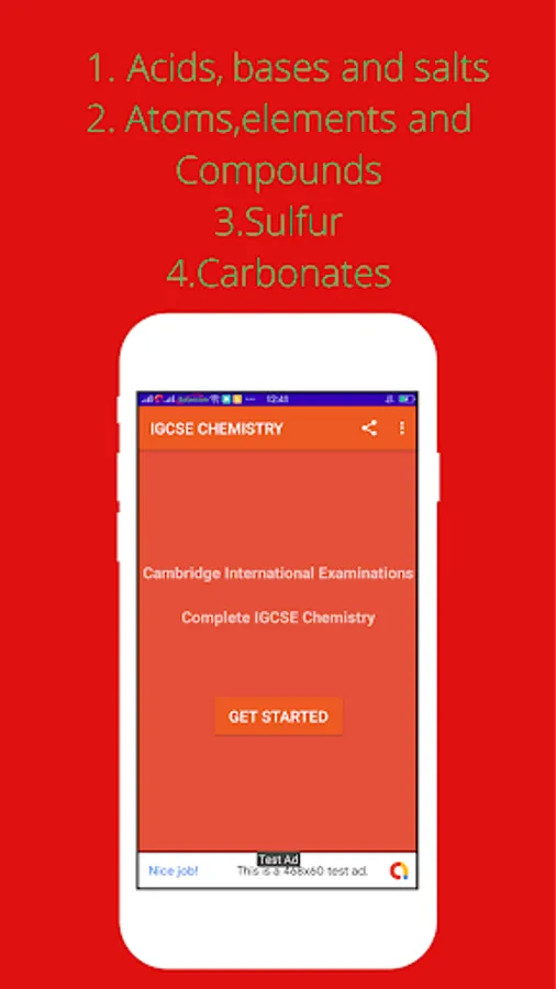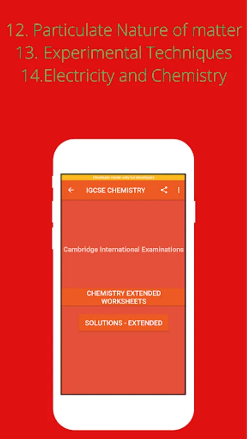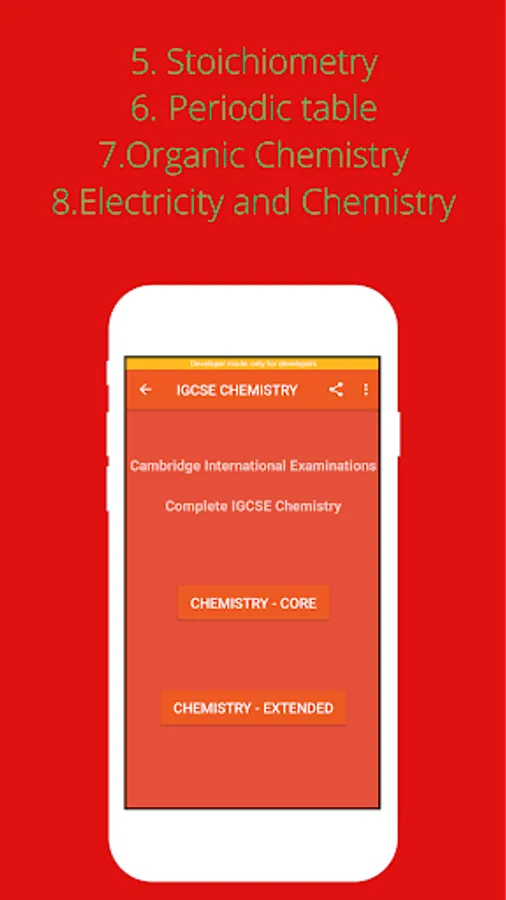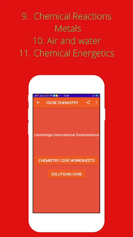 This app offers a complete IGCSE revision package.Questions cut across all the examinable topics in IGCSE Chemistry. These topics include the following: