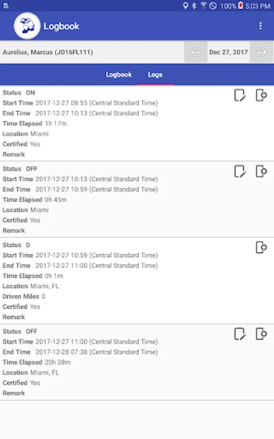 Compliant app to record driver duty status and meet the following regulations: