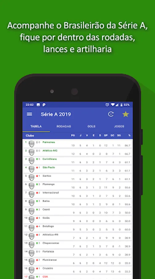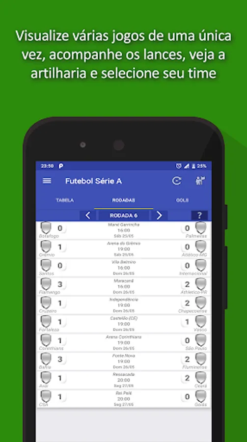 Now you can stay on top of all Brasileirao plays, you can follow all the rounds, including the history, general classification and championship artillery.