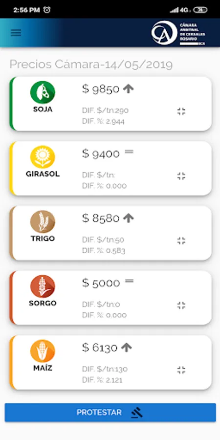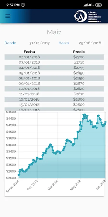 Shows quotation data on the main cereal products.