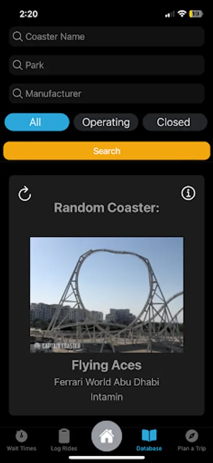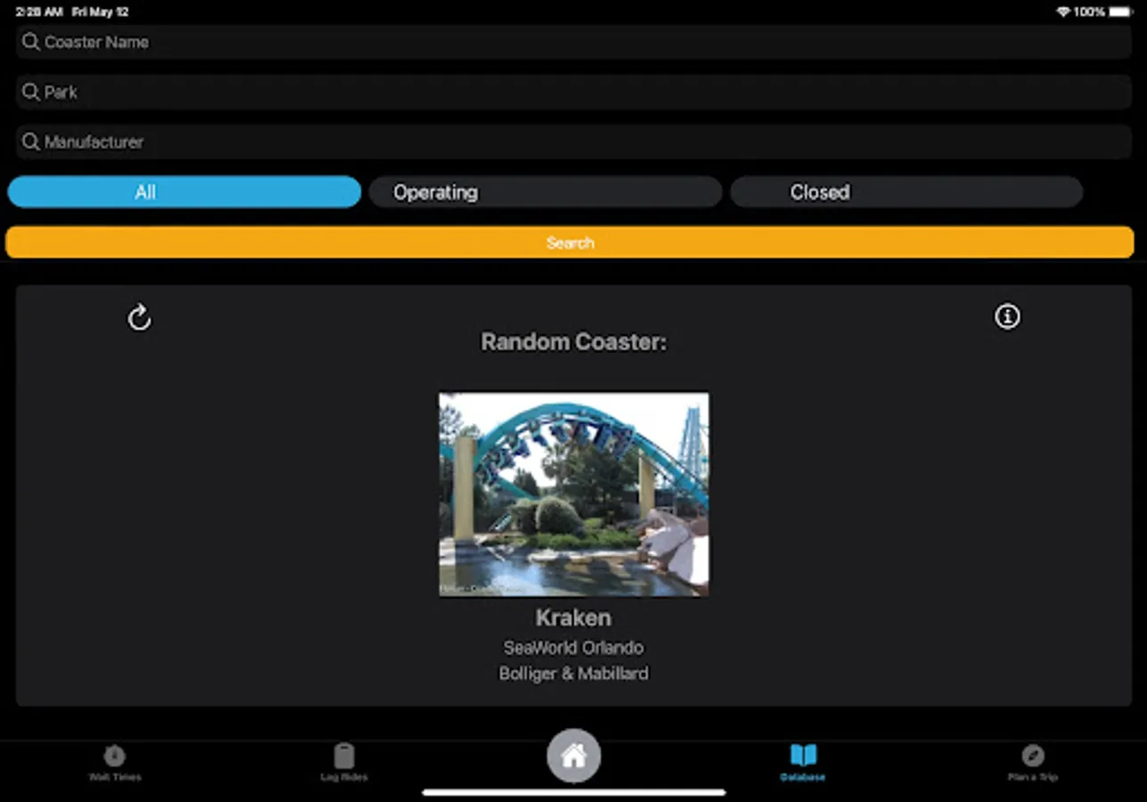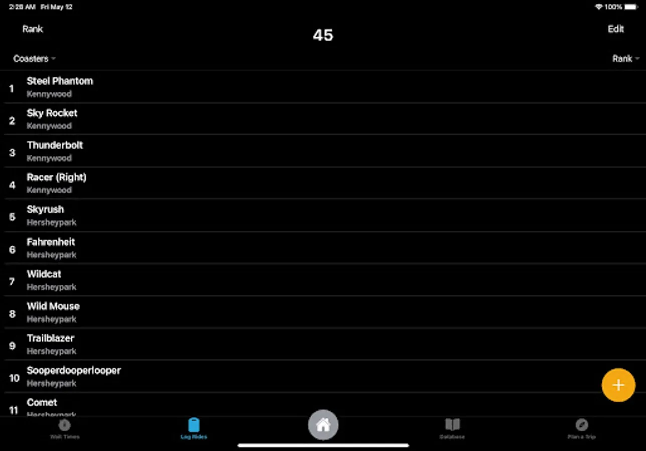 Log your favorite roller coasters, See live wait times, Plan amusement park road trips, See news on the latest news in the amusement industry, and more with CoasterBuddy!