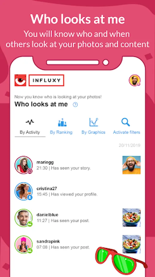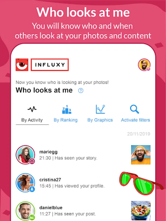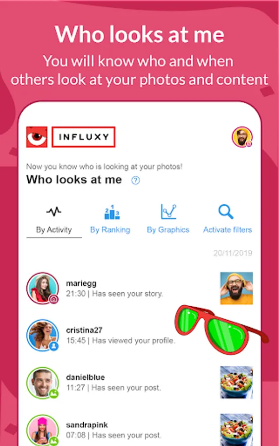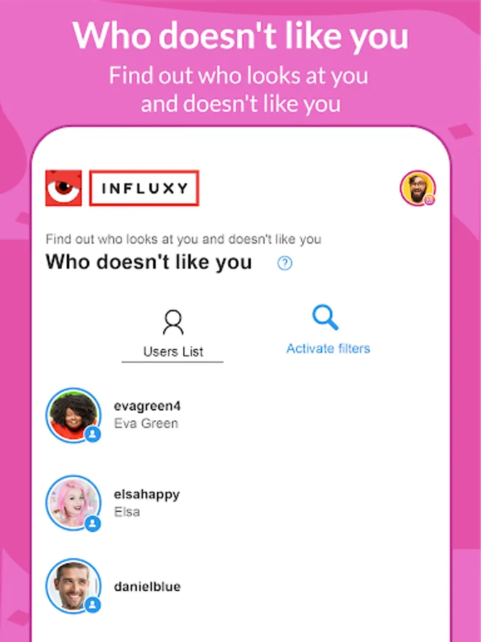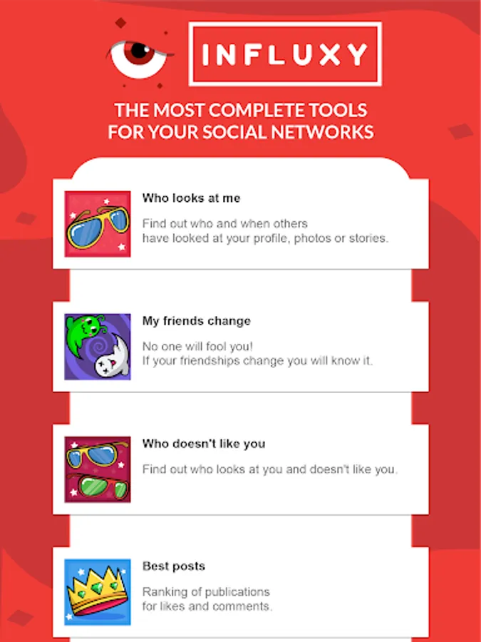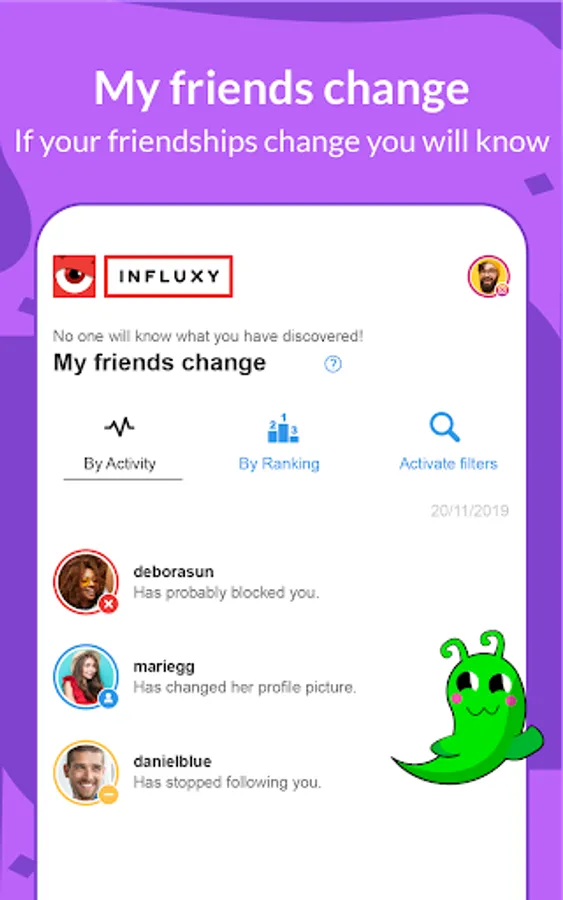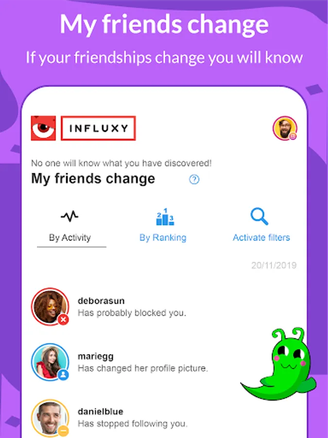 • Find out if something changes in your list of followed or followers: you will not miss anything!