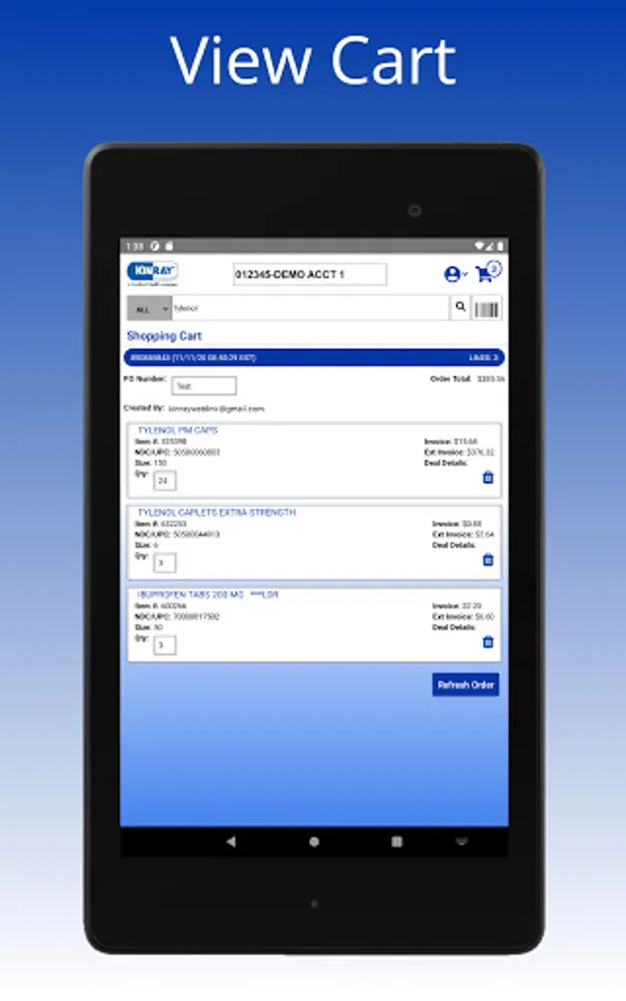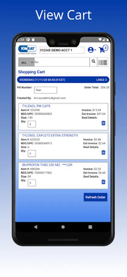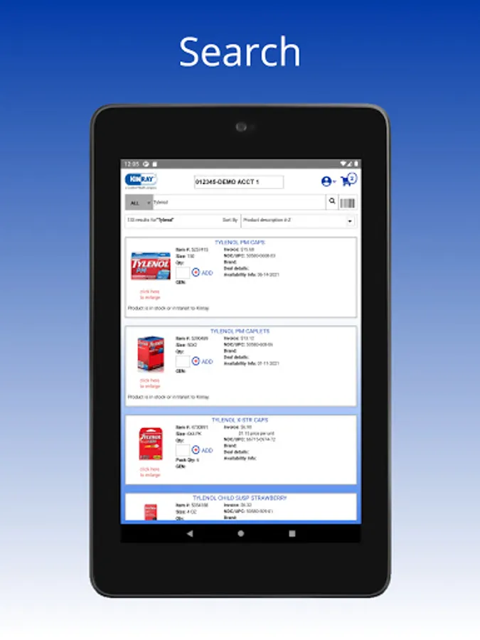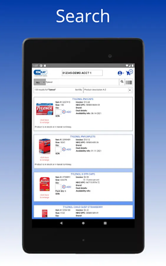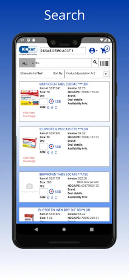 The Kinray Weblink Mobile App is intuitive to navigate, fast, and replaces the need for a scanner device. The app allows you to search items, scan UPC & NDC barcodes, update quantities, and then simply add items to the Shopping Cart.