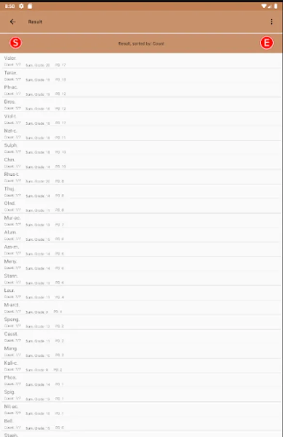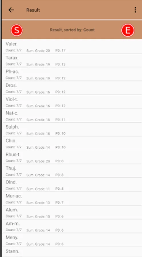 - The result of the repertorisation can be sorted according to the following criteria: number of symptoms, sum of grade scores, polar difference, alphabet of remedies