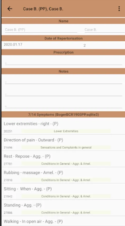 Database: complete symptoms and the related remedy grades of C.M. Boger - Boenninghausen's Characteristics and Repertory - according to the 1905 edition
