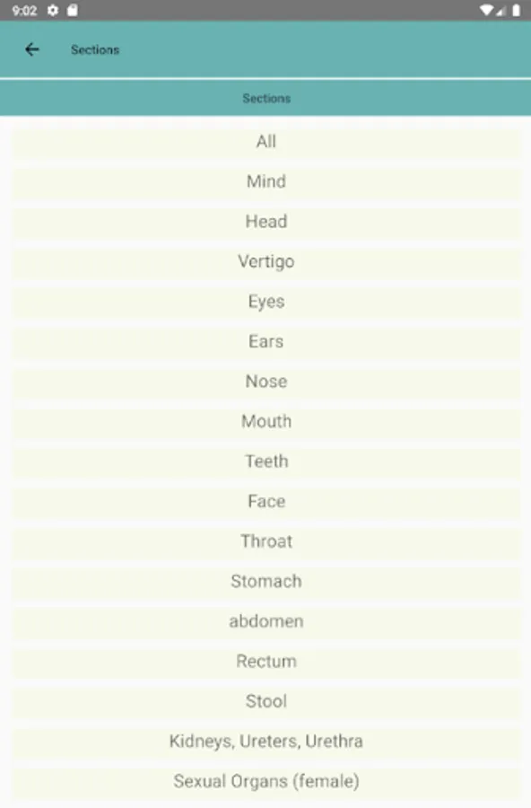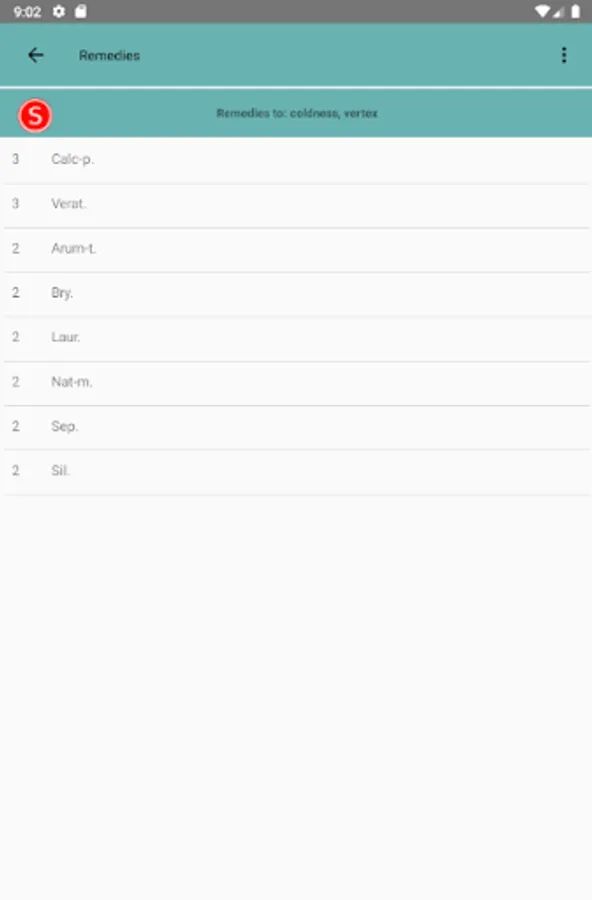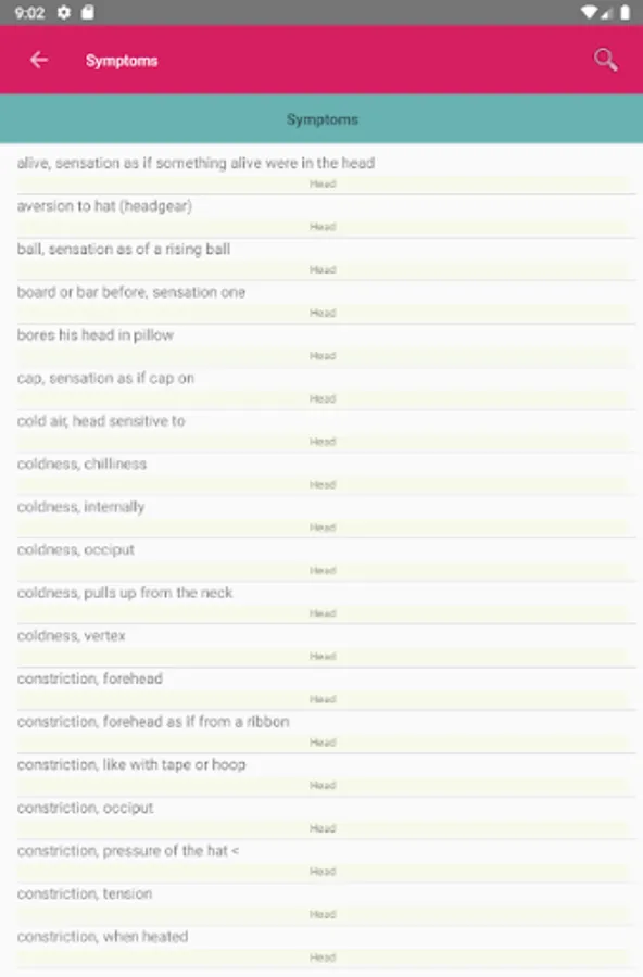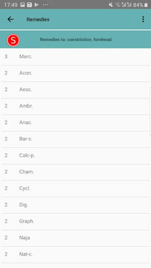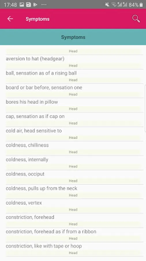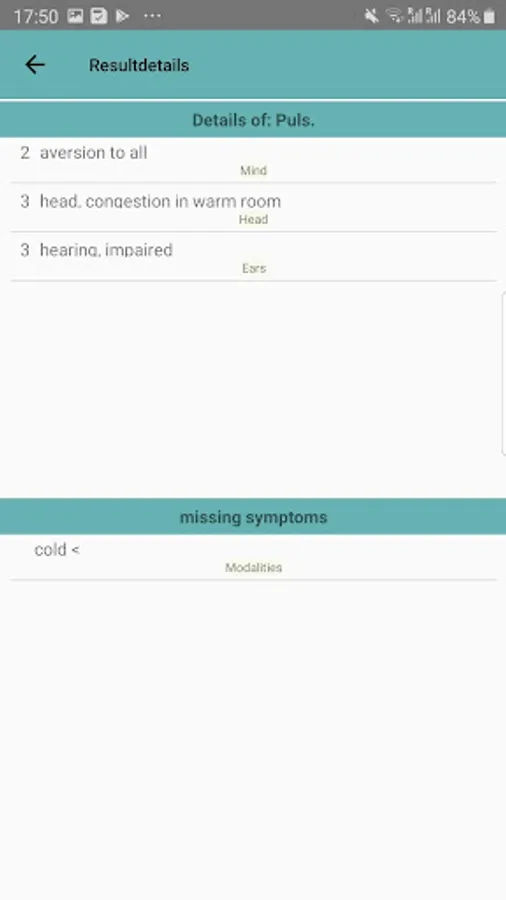 - Symptom list with associated remedies (about 5500 symptoms)