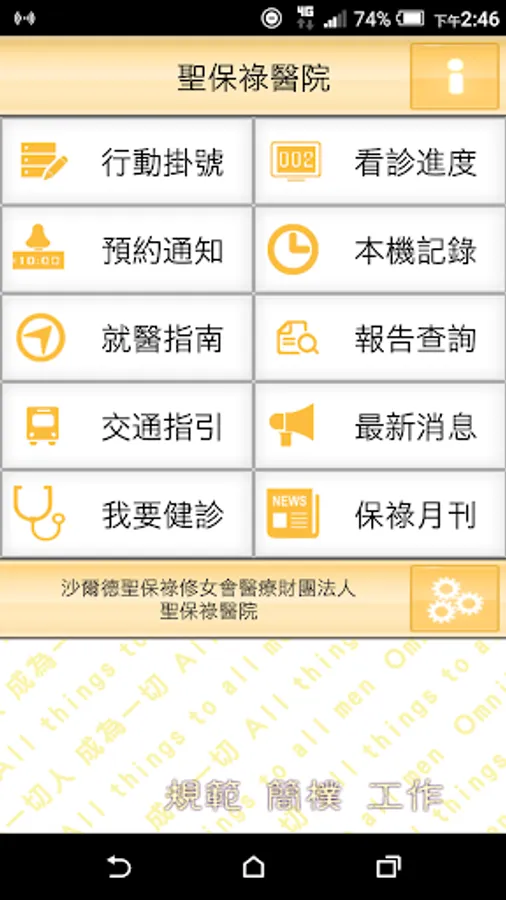 行動趨勢已然顛覆各個產業,聖保祿也積極的利用科技來提升醫院服務品質,提供『聖保祿醫院行動服務App』,方便民眾利用手機、平板進行掛號、看診進度、掛號查詢等服務。