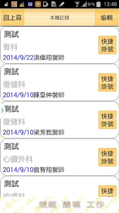 本機紀錄 : 掛號及查詢的資訊留存於手機,透過快捷掛號迅速完成下次看診掛號,節省時間。