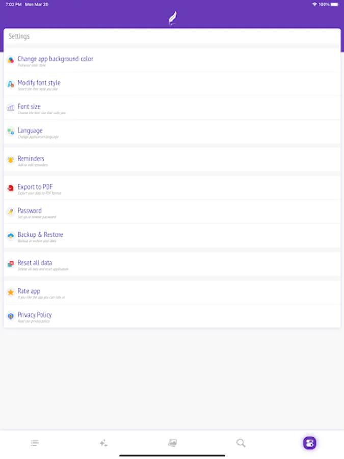 - password protected - what used to be a physical journal with lock you now have a diary with password