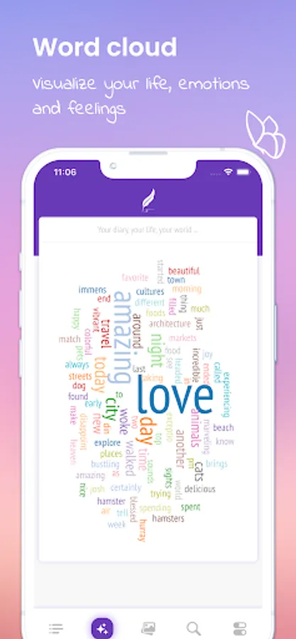 - a place where most used words in your diary are displayed in one place in a beautiful way