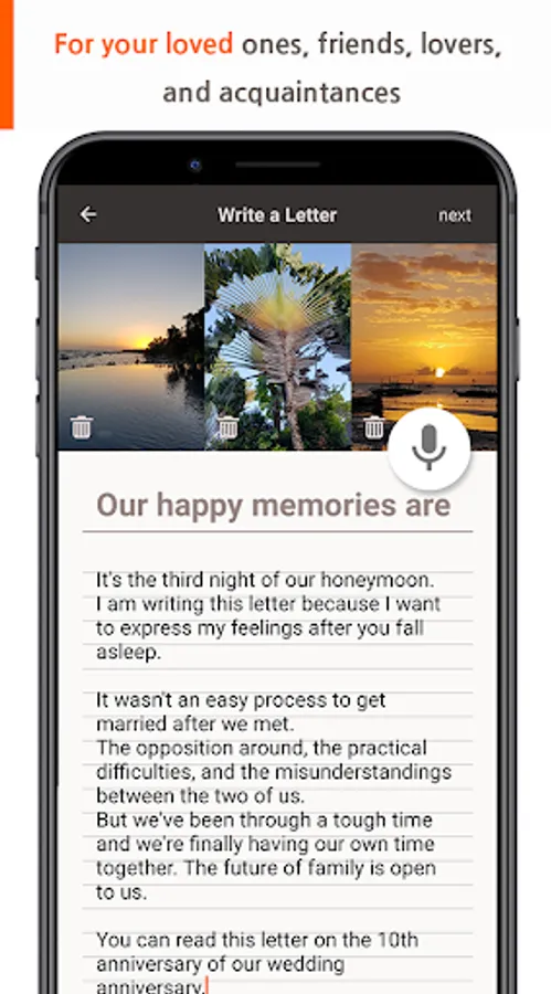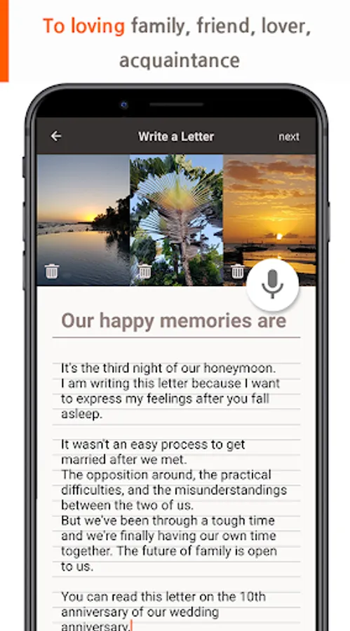 Adding photos or voice record is available while writing the letter.