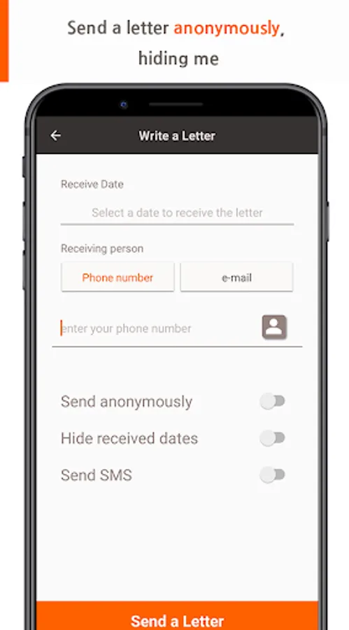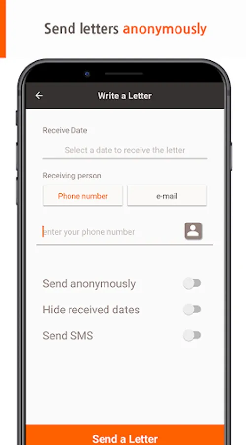 Letters can be sent through phone numbers by searching the contacts.