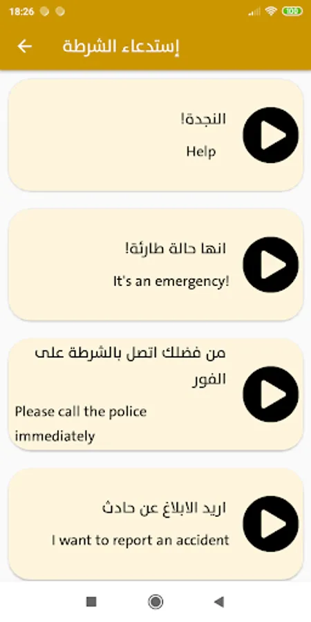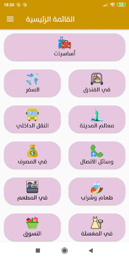 One of the advantages of this application is a great English traveler's guide that allows you to access any text you want through the fast search engine or browse the labels in a simple and smooth way without contacting the net.