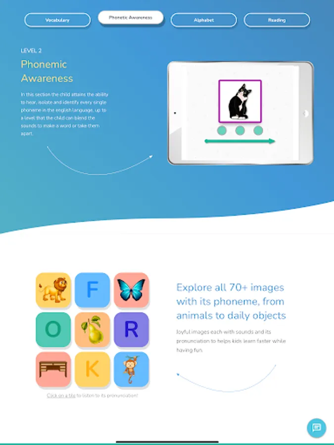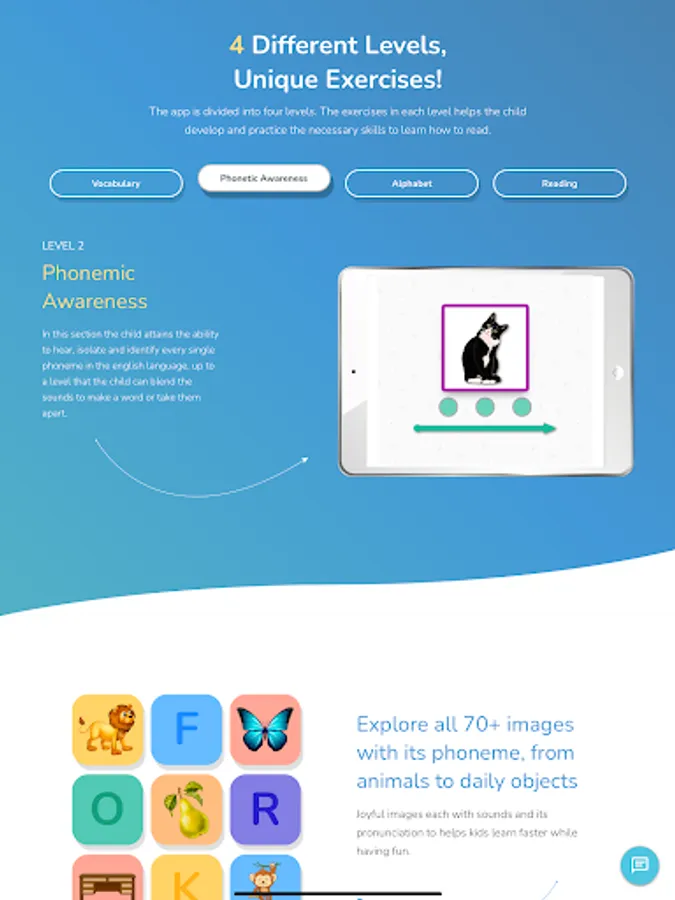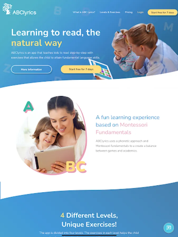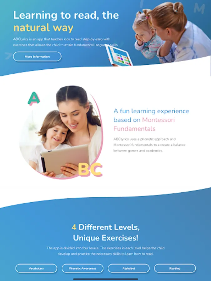 ABClyrics is an app that teaches kids to read step-by-step with exercises that allows the child to attain fundamental language skills.