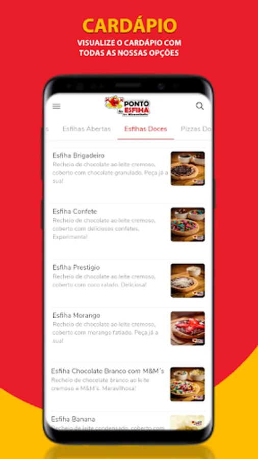 Ending your hunger just got simpler, faster and more practical! You register once in the app, browse through a menu full of delights that only Ponto da Esfiha - Av. Mirassolândia has, place your order in a few clicks and you're done! Just wait for the delivery man.