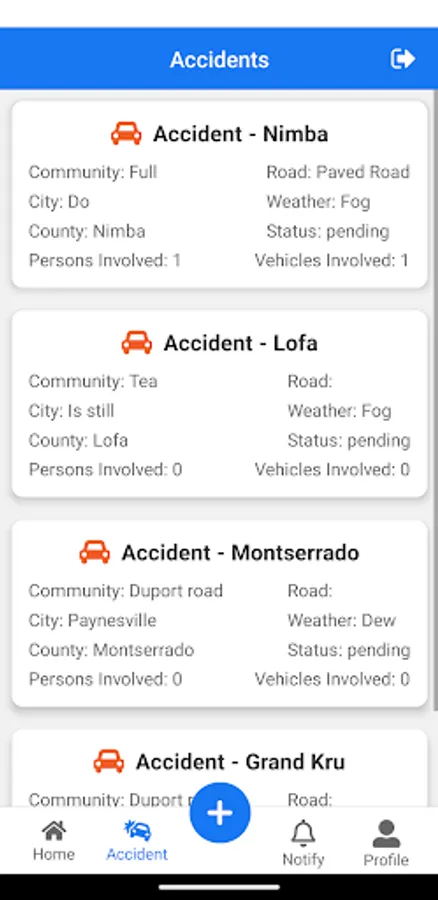 The accident crash Database is a web application used in collecting and storing Accidents relating to vehicles including but not limited to: Cars, Motorcycles, and other moving objects.
