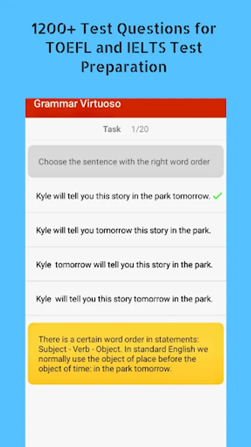Quick, clear, and easy-to-understand explanations and testing system of the English grammar which you need while taking exam preparations for TOEFL and IELTS tests and to enhance your capabilities of English communication for daily needs.