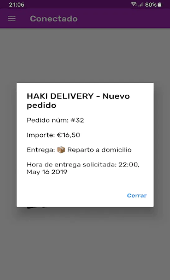 In this case, when an order arrives, a pop-up window with the details of the order is displayed and with a continuous warning that does not stop until the warning has been closed.