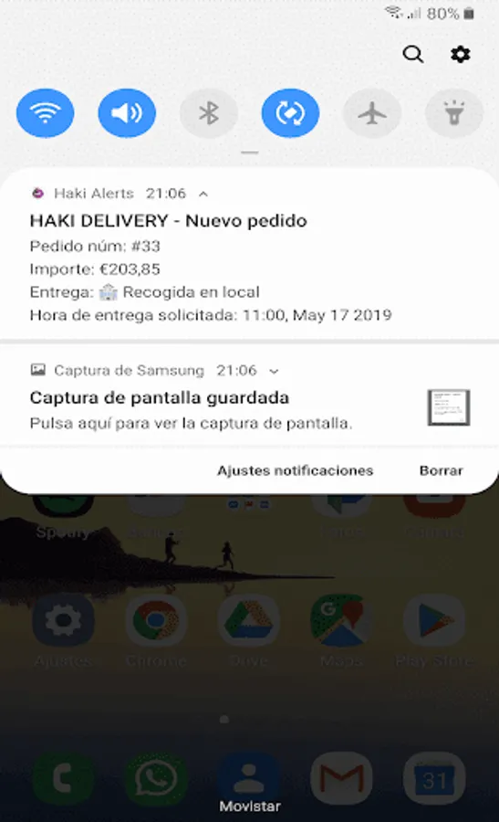 With this App ACM APPS SL offers customers who use our platform of reception of orders HAKI DELIVERY SERVICES a simple and 100% efficient way to be notified as soon as they receive an order.