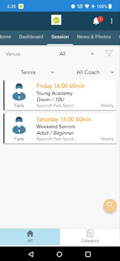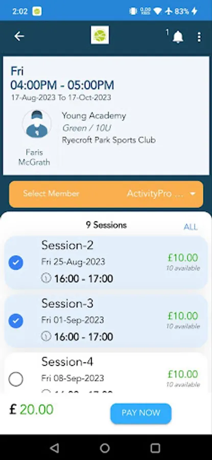 Never miss what is happening within our programme and easily keep in touch with your child's coach.