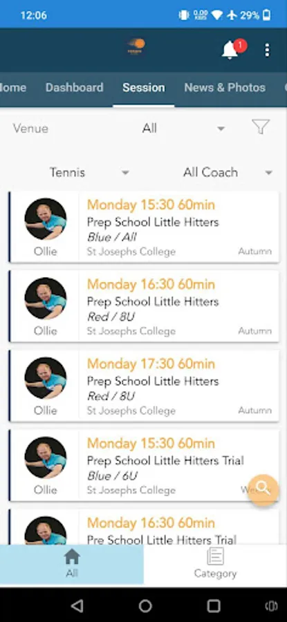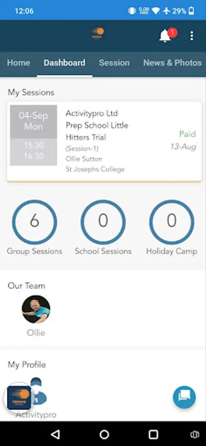 Never miss what is happening within our programme and easily keep in touch with your child's coach.